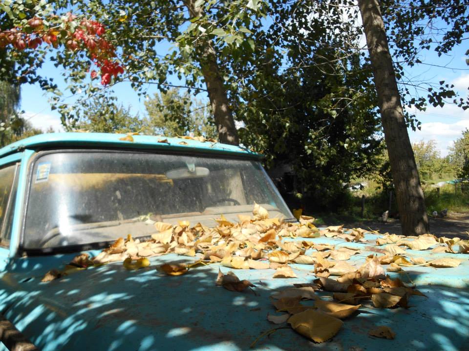 A candle burns inside, illuminating el maté, a bag of honey and green tea flavored yerba, bananas, a book almost finished. Yellow leaves cover a blue truck, both colors bright, primary. Night twinkling unobtrusively out of the ether, becoming the rain and falling into upturned palms and splattering windowpanes.