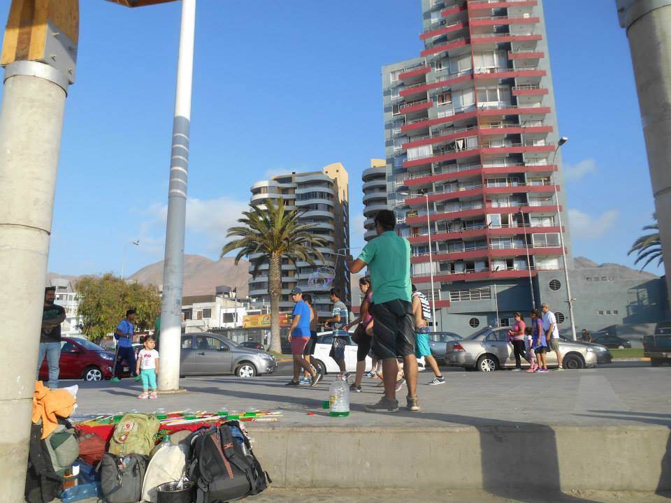 Finalmente una mesa y un café y un iPod cargando. Silencio, de cierta forma. Estamos en el terminal de bus de Antofagasta esperando un bus para Calama (y después San Pedro de Atacama) que sale a las tres de la mañana. Hoy salimos de la playa donde estábamos acampando, y vendimos burbujeros en el centro, y hicimos 26 mil pesos! Es como 52 dólares. En realidad Raúl hizo todo, porque yo estaba de mal humor y con un dolor de la cabeza del paraguayo que compramos de otro artesano. Así que le ayudé un poco pero no tanto. Me he estado sintiendo ansiosa últimamente y no sé por qué.