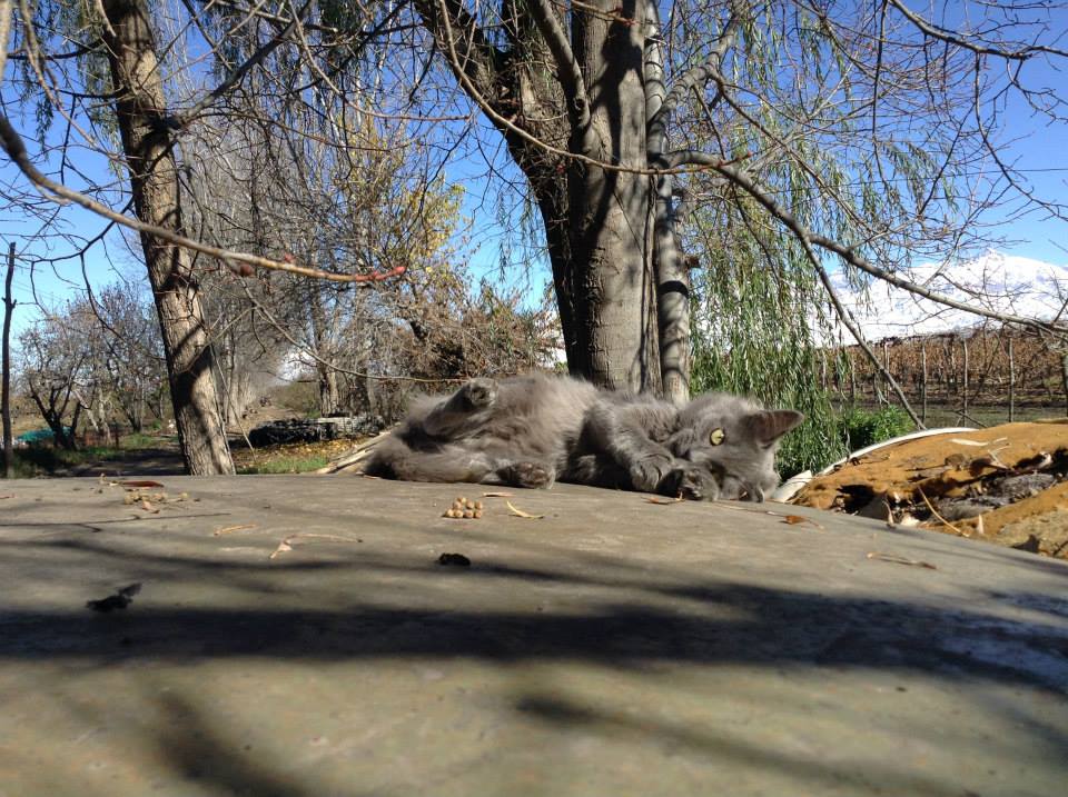 My gray, skinny kitty eats from a pile of cat chow on the cement path on the side of the casita, under my window. Braided, white-blonde hair with the roots finally becoming something more than just roots. Amelia’s voice, “Ana! I go toilet caca!” from behind the screen of the window to the left, and my cackling laugh, bouncy, high, ridiculous.