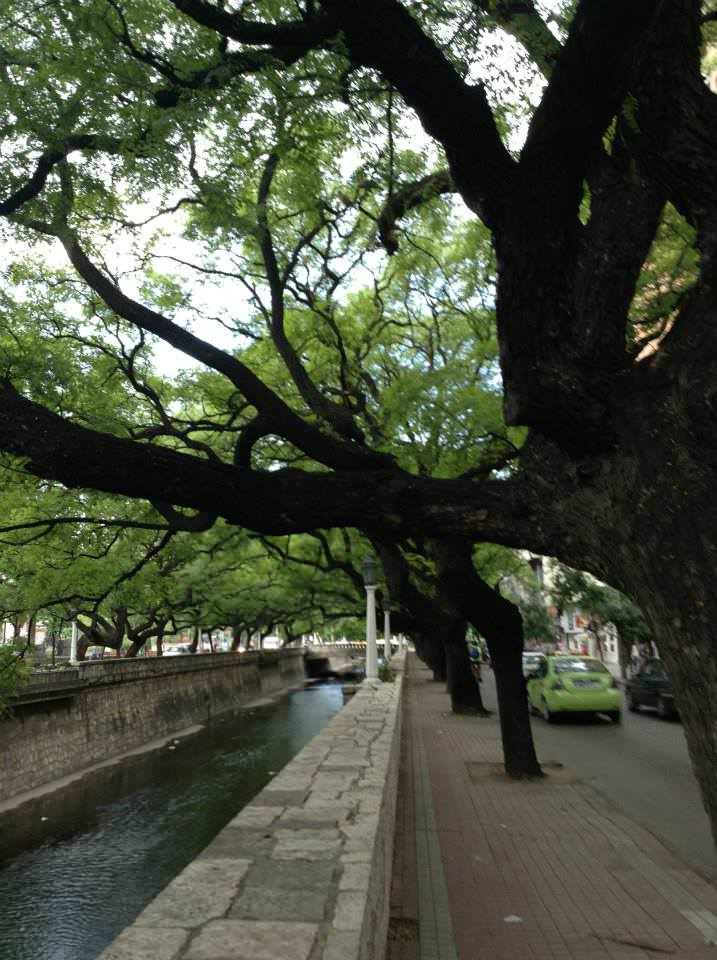 Yesterday I walked along la cañada until I found a random concrete table with four concrete benches surrounding it, in a miniature plaza without grass. The perfect writing desk, my personal office facing the street, shade and a cool breeze my recipe for thinking deeply.