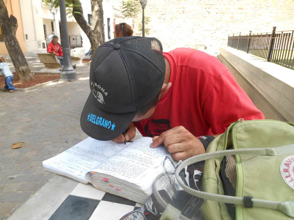 He pointed out others that live in the street, viejos carrying bags of clothes that he saluted, other jóvenes with missing teeth, handing strangers cards with writings about Jesus and asking for money.