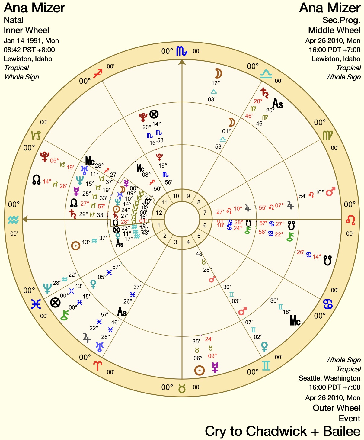 Do the astrological symbols describe Ana crying out of frustration at practice? Does any of this describe her recent mention of her art project and how she’s relating it to her existential concerns?]