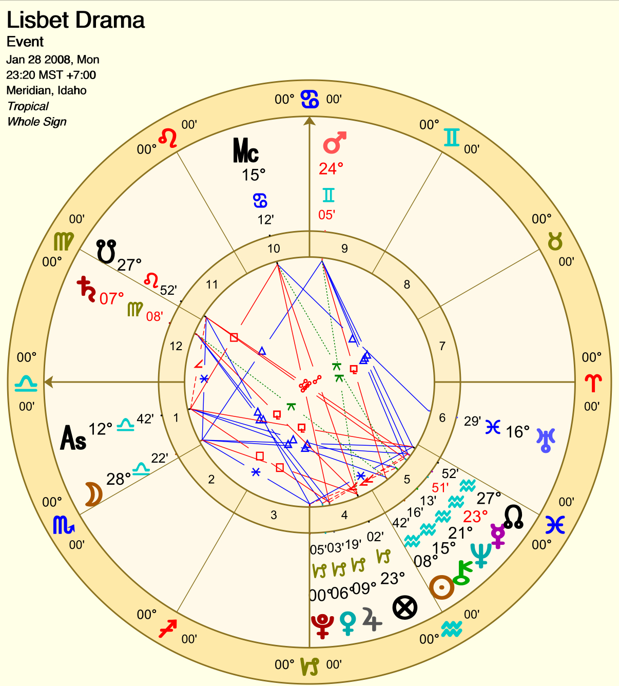 [*I’ll use the chart of this moment for the Lisbet drama. Charts and notes follow.]